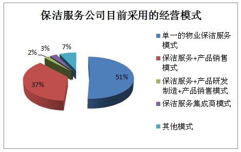 現(xiàn)階段,大部分的物業(yè)保潔公司還是采用專業(yè)化單一的保潔服務發(fā)展模式,在這物業(yè)保潔的市場里不斷發(fā)展壯大,逐漸形成了保潔服務高度專業(yè)化的競爭優(yōu)勢。調(diào)查結果顯示:單一的物業(yè)保潔服務模仍被采用的企業(yè)占51%,保潔服務+產(chǎn)品銷售的發(fā)展模式占37%,是目前物業(yè)保潔服務公司的兩大經(jīng)營模式。